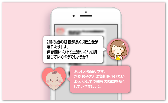 「あなた専属のコンシェルジュ」として助産師・保育士、栄養士など育児のプロに、 何気ない子育ての悩みや不安をLINEで気軽に相談できます。